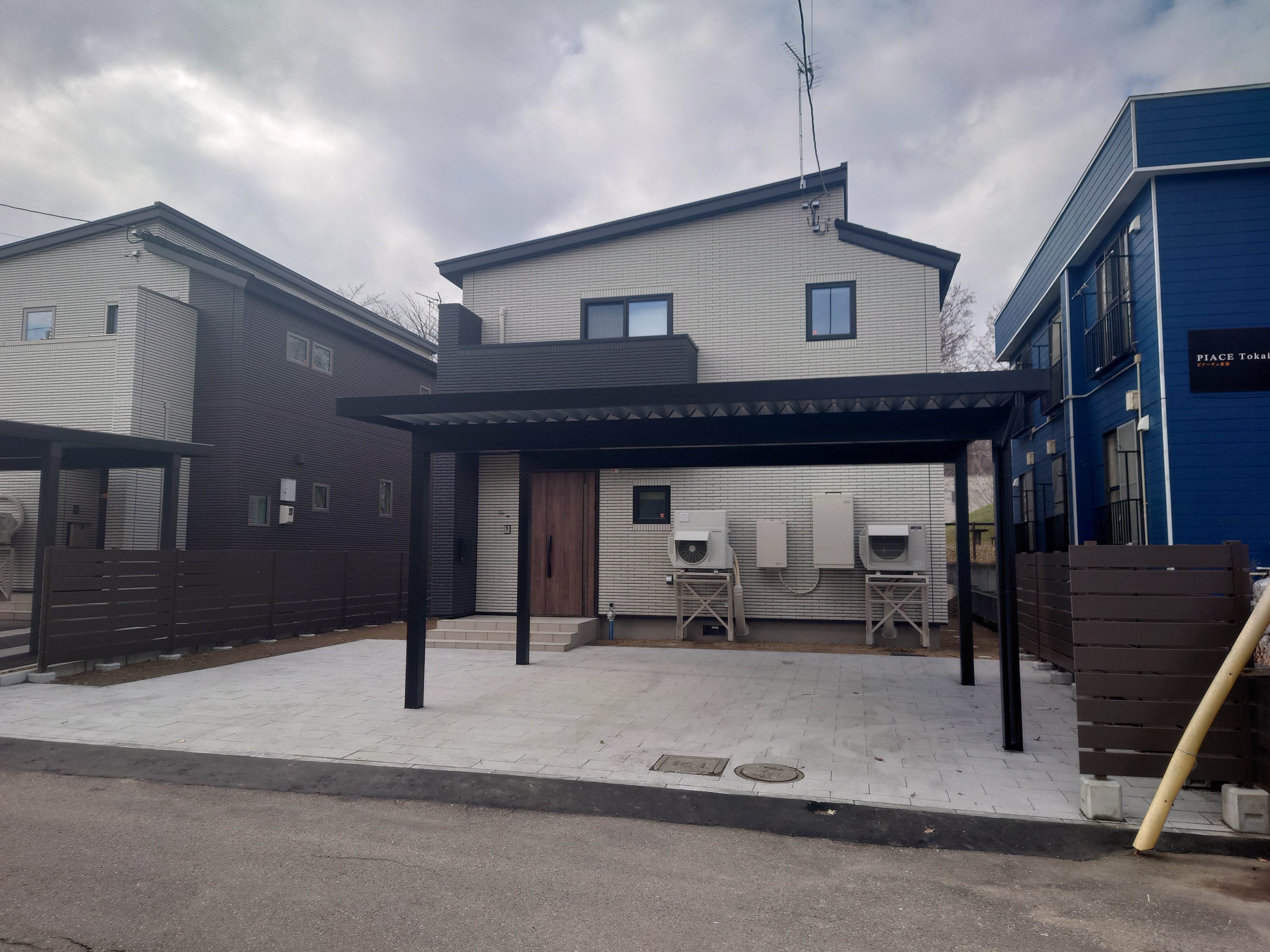 片持ちカーポート・ロシェナチュラル・人工木デッキ