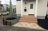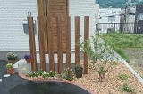枕木ステップ・目隠しフェンス・植栽